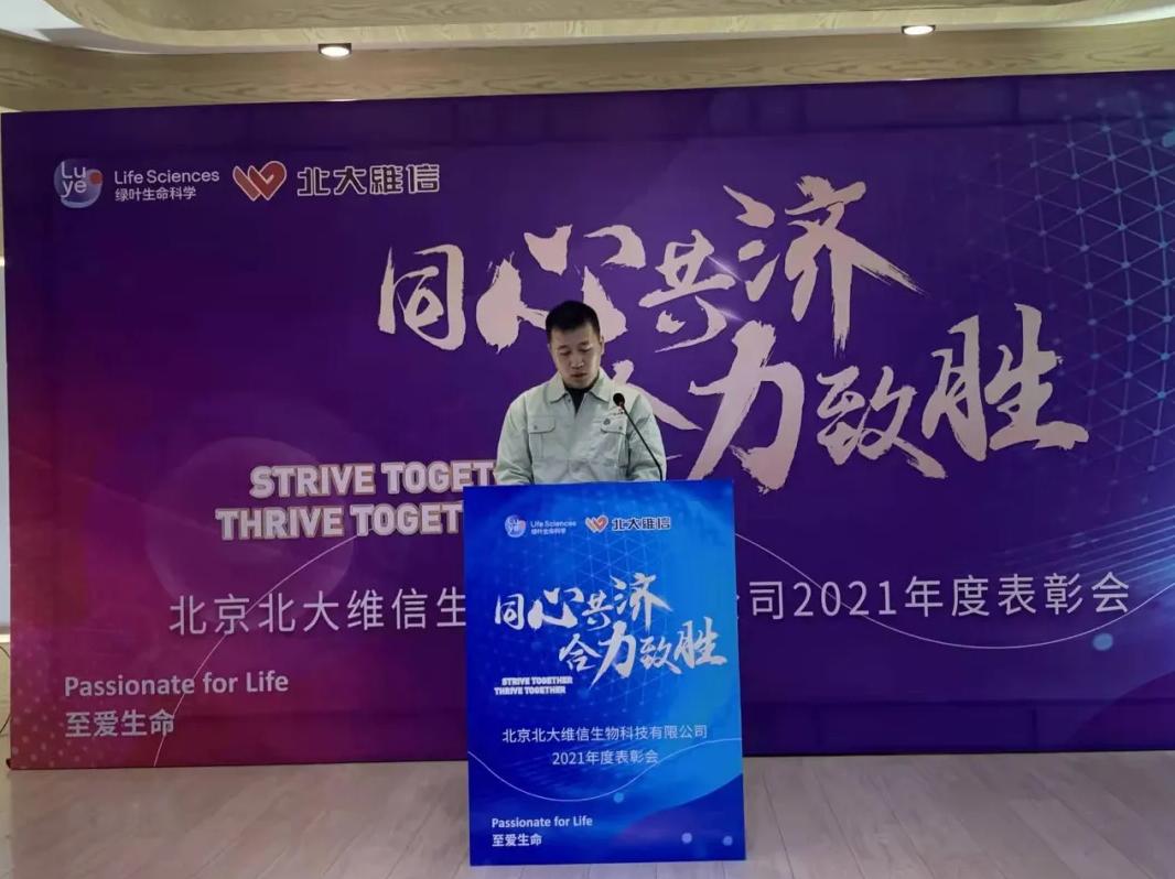 薛總對北大維信在2021年取得的生產(chǎn)經(jīng)營上的突破表示祝賀,肯定公司全體員工的堅守和付出。同時薛總也向公司全體員工介紹了綠葉生命科學(xué)集團在2021年取得的重要成就和未來的規(guī)劃,鼓舞北大維信全體員工在新的一年取得新的突破,并向公司全體員工致以虎年祝福。